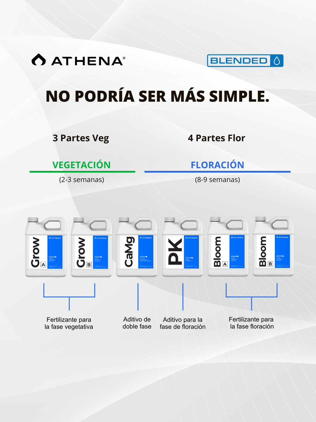 La línea Athena Blended cubre crecimiento, floración y soporte nutricional avanzado de forma estructurada.