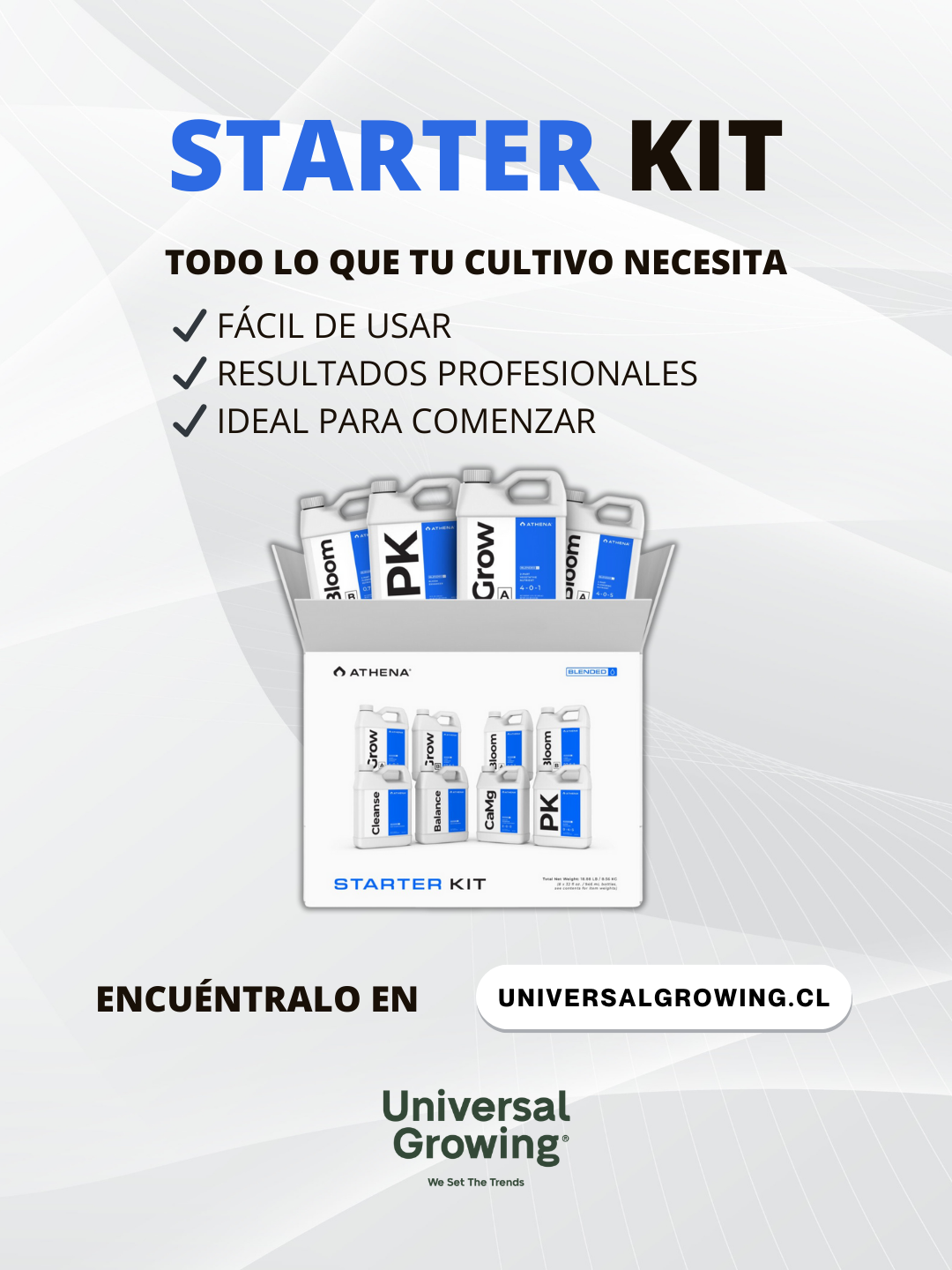 Athena Blended Line Starter Kit 32 oz es un kit de fertilizantes Athena para cultivo indoor y homegrower, diseñado para cubrir todas las etapas del cultivo con nutrición limpia, estable y resultados profesionales desde el primer riego.