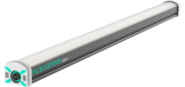 La luz de cultivo LED Flexstar de 120W está diseñada para iluminar el área debajo del dosel de las plantas, incrementando el rendimiento hasta un 40%. Cuenta con un ángulo de haz de 120°, conexión en cadena de hasta 17 unidades, y regulación de 0-10V. Es resistente al agua (IP66) y tiene una vida útil de más de 50,000 horas. Ideal para horticultura profesional, su espectro de luz y diodos están optimizados para un crecimiento eficiente de las plantas.