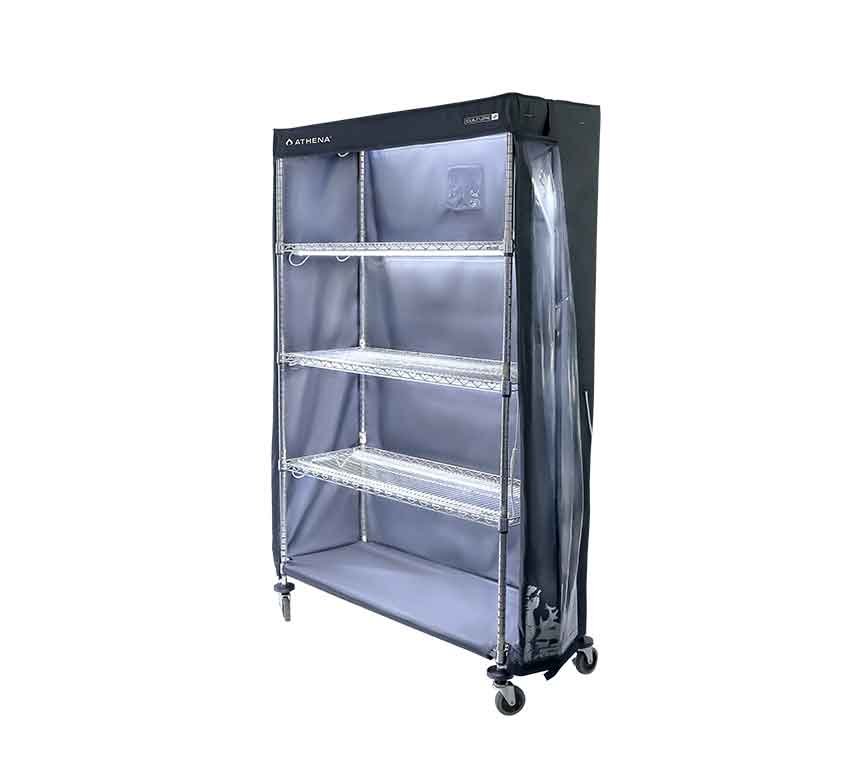 VPDome encaja perfectamente sobre un estante de alambre estándar (48″ de ancho x 72″ de alto x 18″ de profundidad).